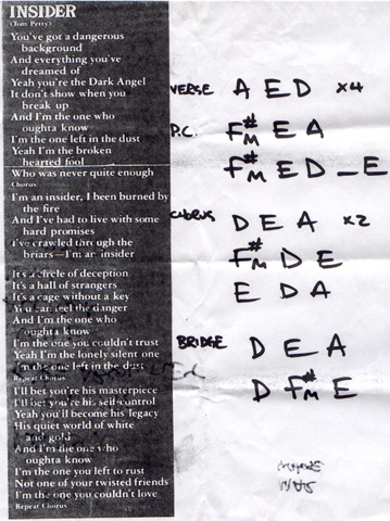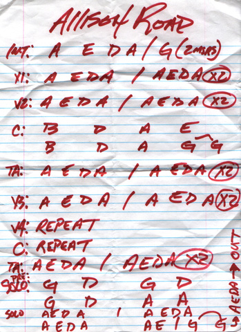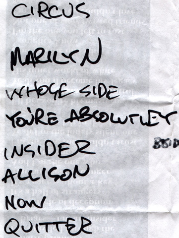 Pharoahs 2000 Set List, including Insider and Allison Road