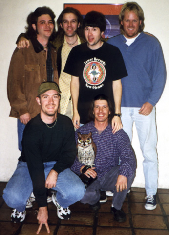 Moon, Brian, Scott; Front: Mac, Simon the Owl, Chimpy)